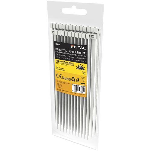 Entac cable ties with 8 kg tensile strength, a length of 100mm and a width of 2.5mm can be used to hold objects with a diameter of up to 22mm, ensuring stability and reliability in any application.