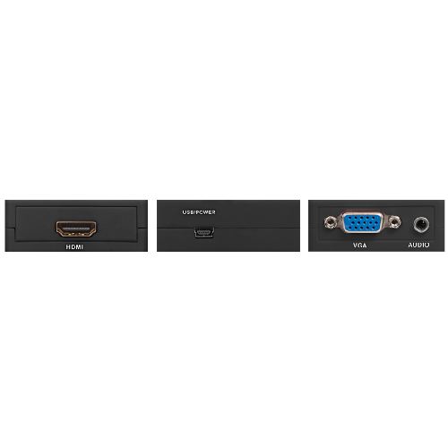 This VGA to HDMI Converter allows VGA+R/L signal to be converted easily to HDMI signal.