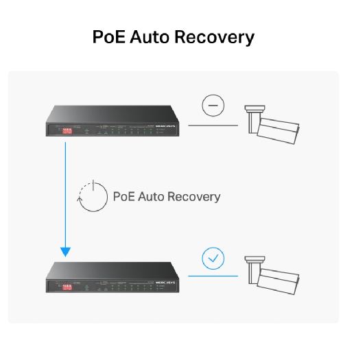 ● PoE Auto Recovery: Automatically reboots your dropped or unresponsive PoE-powered devices