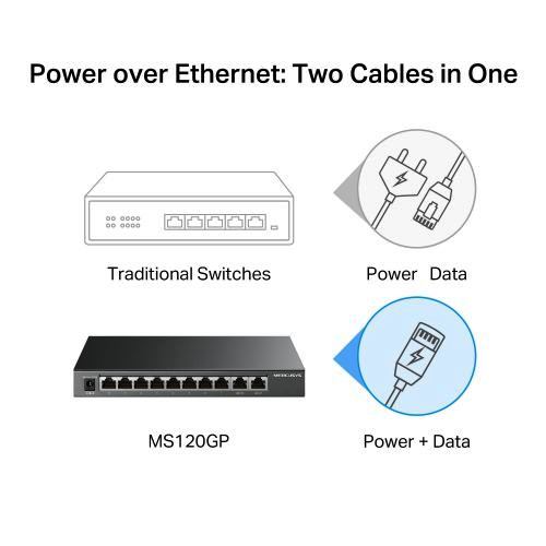 • 10-Port Gigabit Desktop Switch with 8-Port PoE+ (MS110GMP)