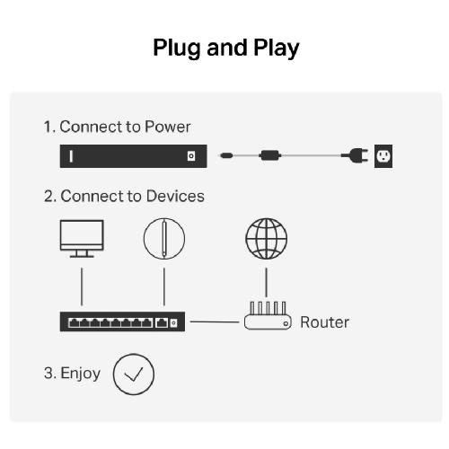 ● 10 Gigabit Ports: 8× Gigabit PoE+ ports , and 2× Gigabit Uplink Ports